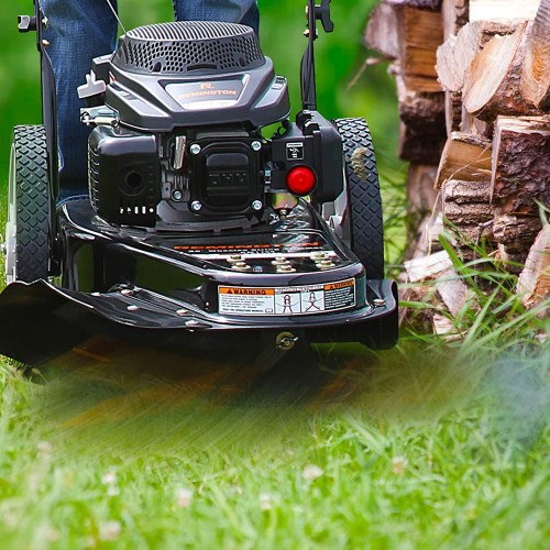 - USER FRIENDLY: Off-set trimmer head feature helps to trim hard-to-reach places while the 14-inch ball-bearing wheels help you move easily through rough terrain.